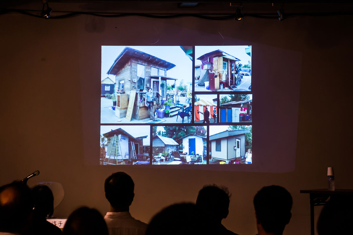 自分の家を自分の手でつくるとか、食べ物をつくれるとか、それは災害時にすごい力になったりするわけですね。タイニーホームということで、大きな土地を持てない人も居住地を持てるということなんですけれど、あとは災害で避難しなければいけない人たちがたくさん出た時にも、こういった小さい家を短期間でつくれるというスキルが役立ちます。そのスキルを町中の人が持っていれば、災害が起きたあとも、暮らしというところで役に立つ。