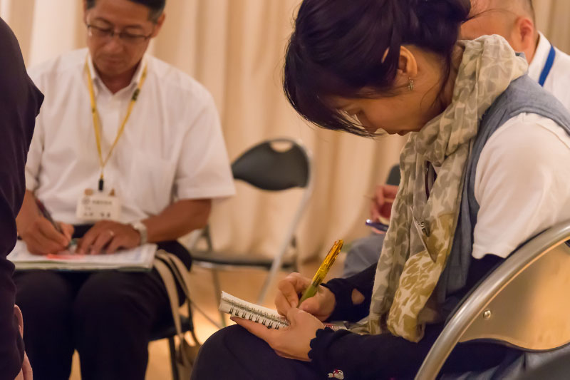 意見が言いにくかったなという、もともと内気な方もいらっしゃったかもしれないけども、その中でも何かしら自分の貢献を紙に残すかたちでみなさんここに関わったという感触を持って、お家に帰られたらすばらしいなと思っています。