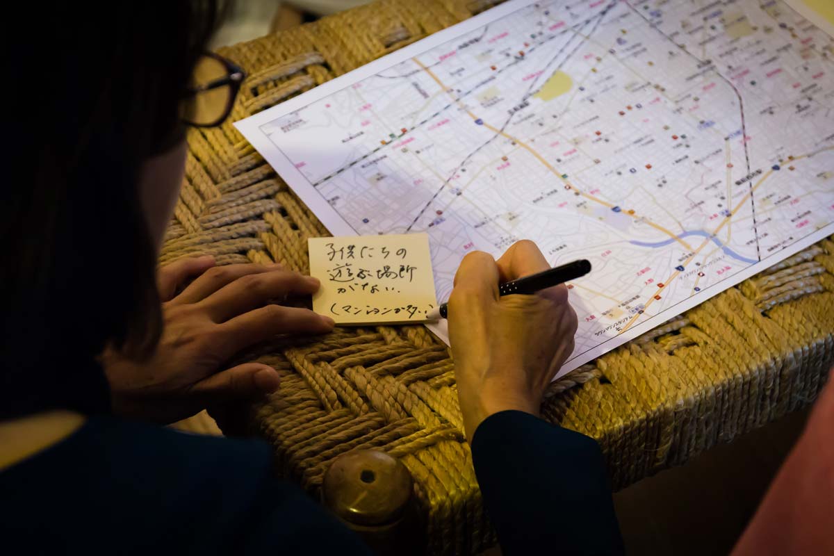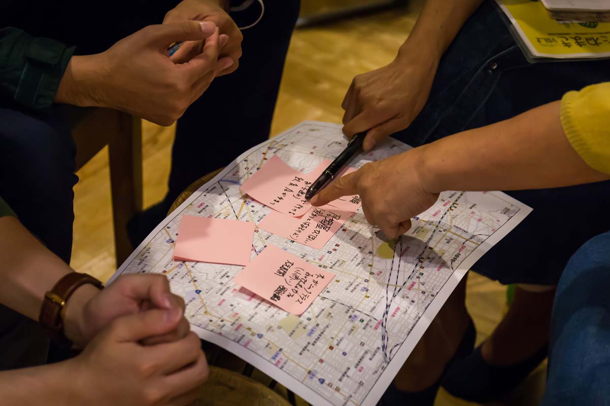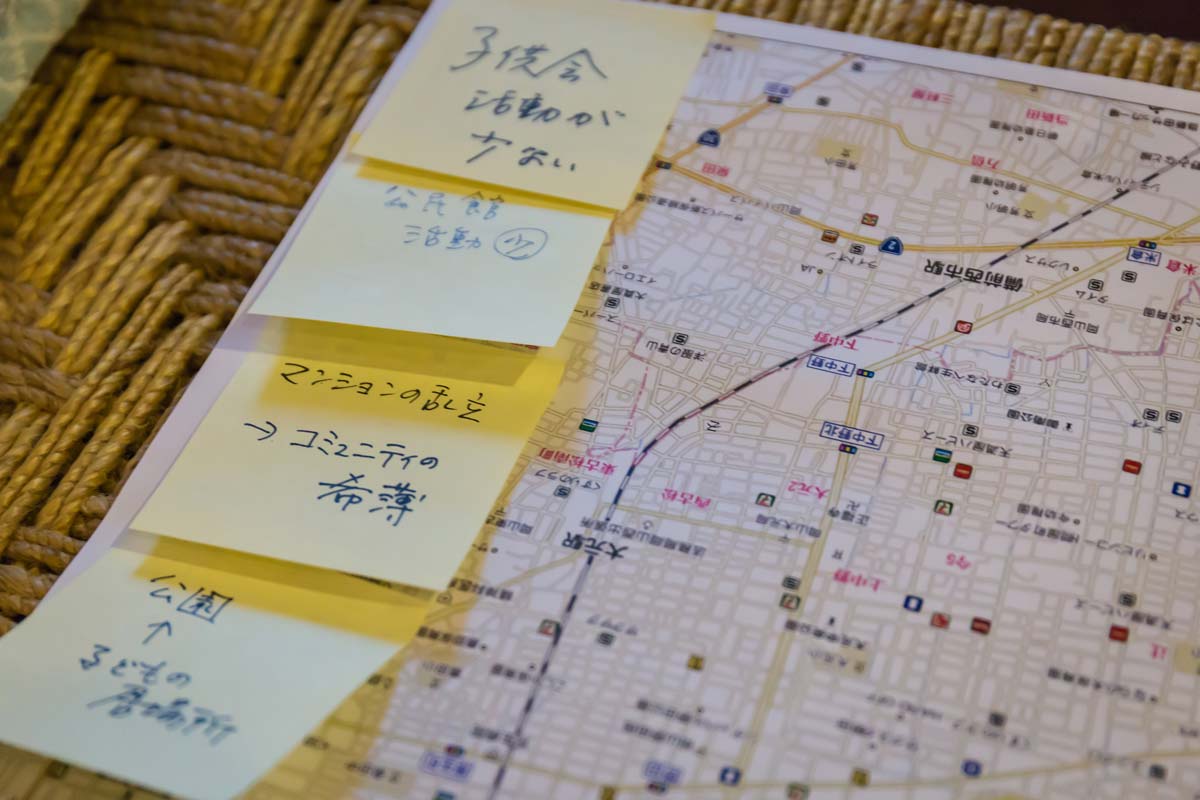 グループでどんな話をしてほしいかというと、地図を見ながら「この地域のこのへんはこれからこうなっていくといいよね」とか、「ここはこれから可能性あるんじゃない?」とか、例えば「お店はこことここだけど、このへん空白だよね」とか、そういう地図を見ながらのお話。